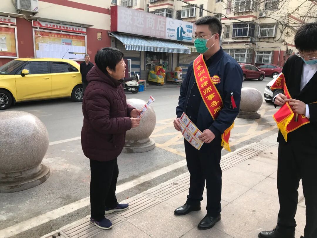 普法活动当天,律所的伙伴们带着宣传单走进了社区街道,和街上的老人、青年、妇女、儿童都进行了良好的互动交流,热情的居民也给予了我们恰当的回应。