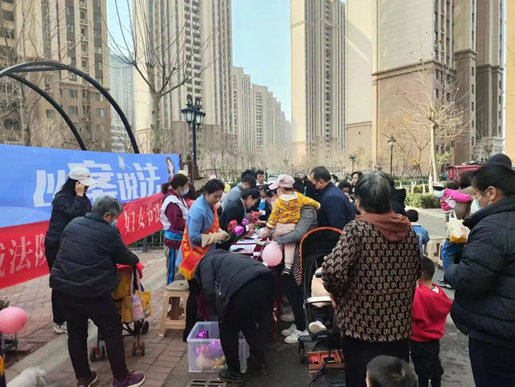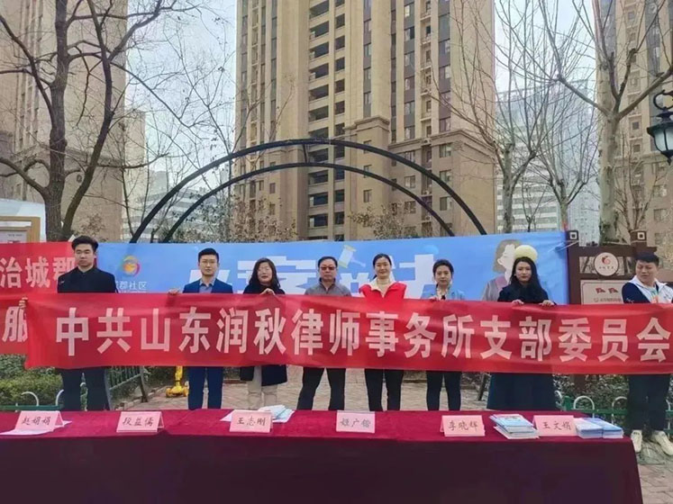 3月6日,值妇女节来临之际,中共山东润秋律师事务所支部委员会联合华山街道城郡社区举行保护妇女、儿童权益普法宣活动,山东润秋律师事务所赵娟娟律师、刘爱松律师、徐英奇律师以及实习律师宁金龙共同参加本次活动,律师们活动深入社区群众,为广大妇女儿童提供免费法律服务。