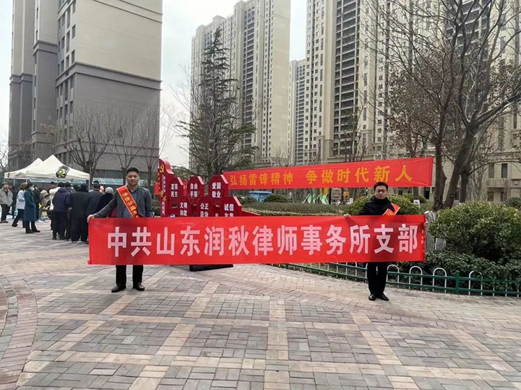 为弘扬雷锋服务人民、助人为乐的奉献精神,3月3日,在全国第60个“学雷锋纪念日”到来之际,山东润秋律师事务所党支部书记袁波律师和执业律师孟凡波,走进历城区御山首府东区、北区参加“弘扬雷锋精神 争做时代新人 ”主题普法活动,并为社区居民提供公益法律咨询。