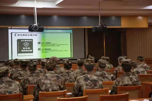 为不断提高军队法治思想和法律素质,进一步做好普法宣传活动,切实增强军人的法治观念,2023年3月9日,山东润秋律师事务所高振律师、刘爱松律师、孟凡波律师在开展了以“法在心中伴我行”为主题的普法宣传活动。