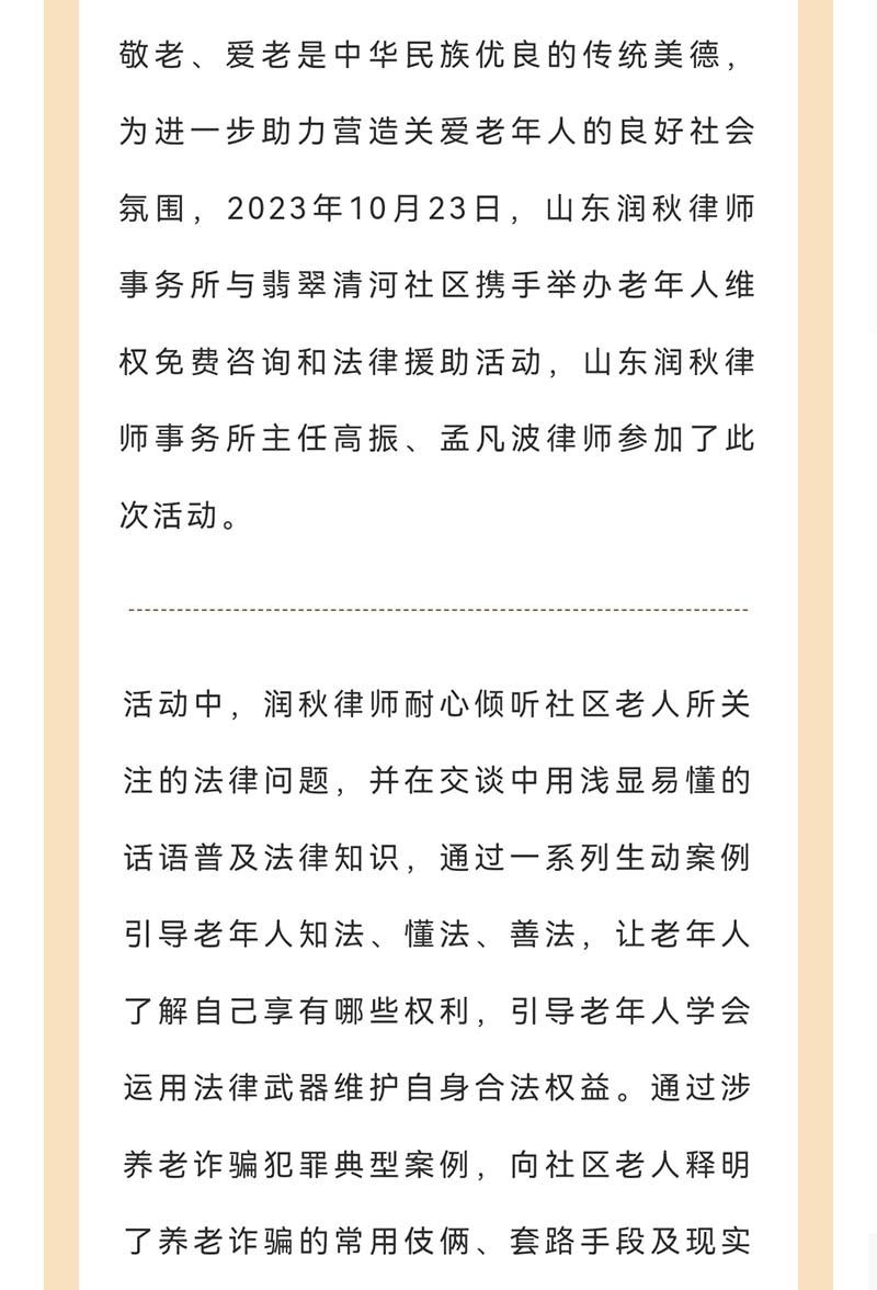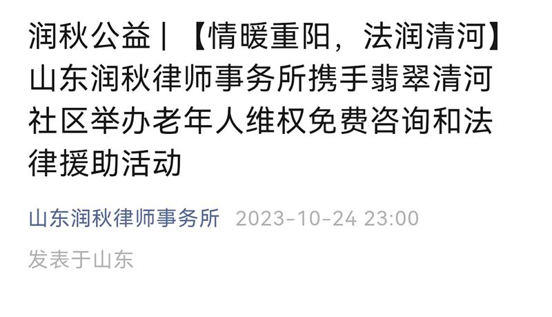 润秋公益 | 【情暖重阳,法润清河】山东润秋律师事务所携手翡翠清河社区举办老年人维权免费咨询和法律援助活动
